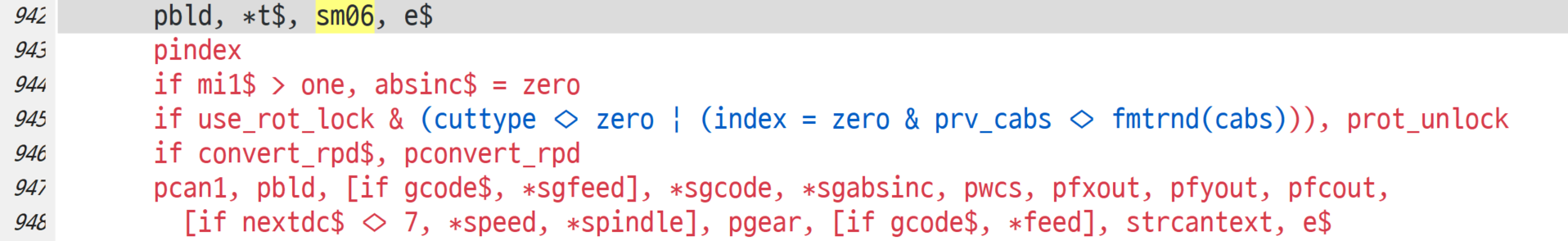 pbld, n$, [if gcode$, *sgfeed], *sgcode, *sgplane, scc0, sg49, sg80, *sgabsinc, [if gcode$, *feed], e$