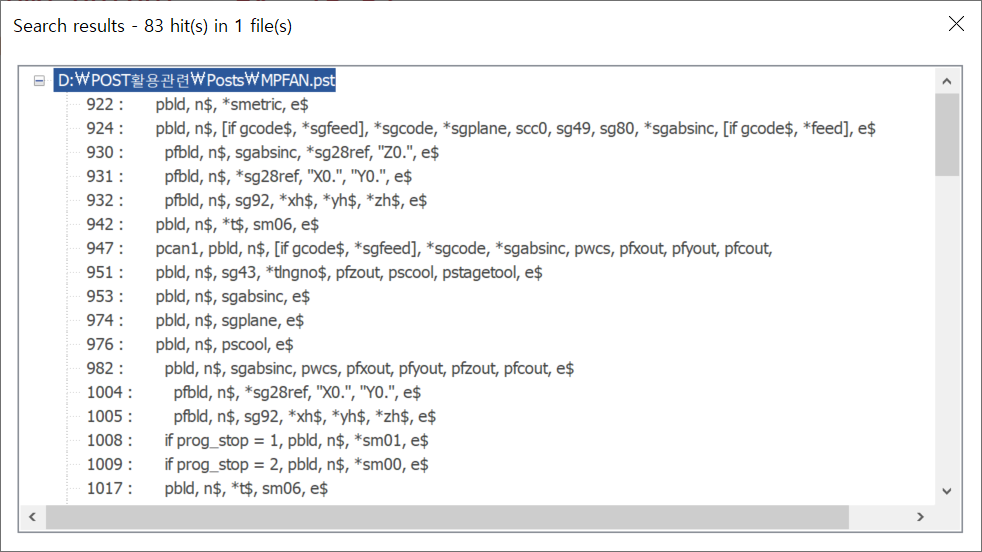 MPFAN.PST 포스트 파일을 적용한 NC데이터입니다.