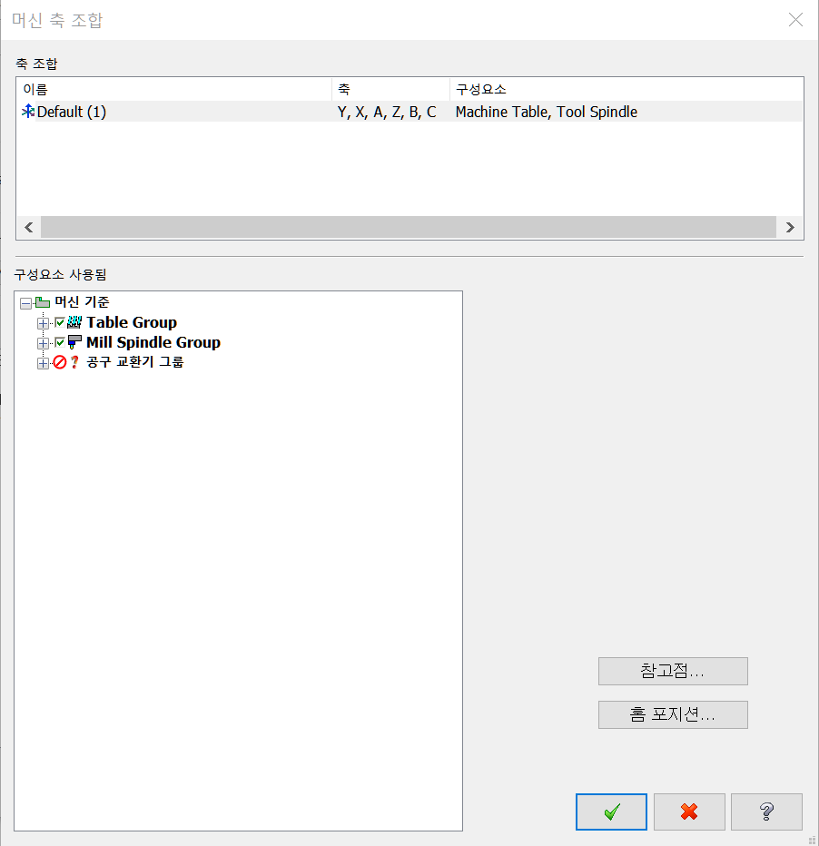 * 홈포지션 좌표계와 참조점 좌표계는 해당 가공정의 작업평면(공구평면)의 원점에서 절대좌표로 정의합니다.