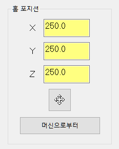 실제 홈 포지션을 설정하고 NC데이터(G-CODE)를 출력해 보아도 해당 좌표가 출력되지 않습니다.