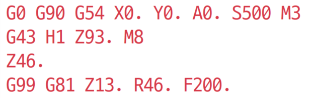 출력된 NC데이터(드릴 사이클)를 보면 아래와 같습니다.