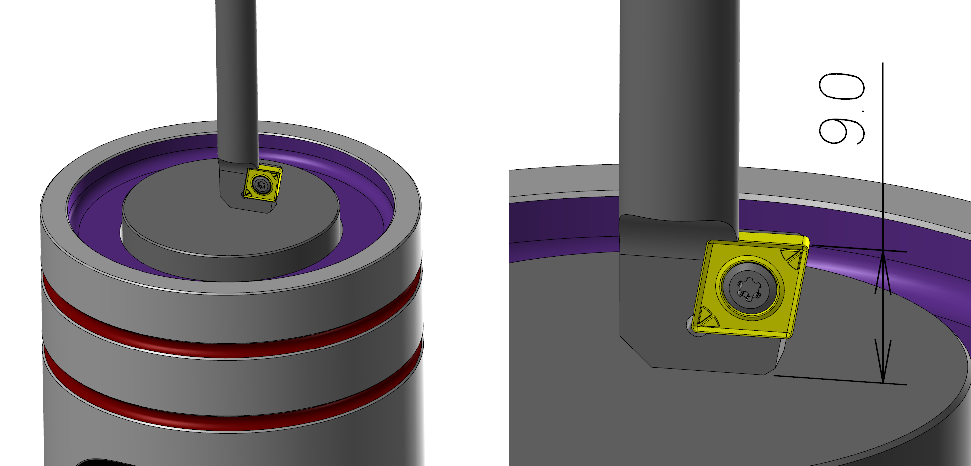 * 이것은 간혹 잘못된 공구 선정 또는 맞는 공구인데 규격을 잘못 이해하고 잘못된 거리값으로 가공경로를 생성하는 경우가 있습니다.