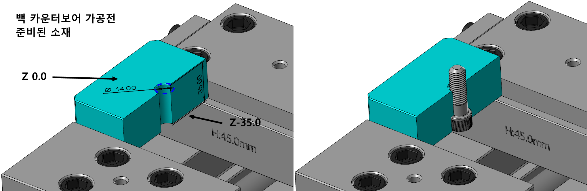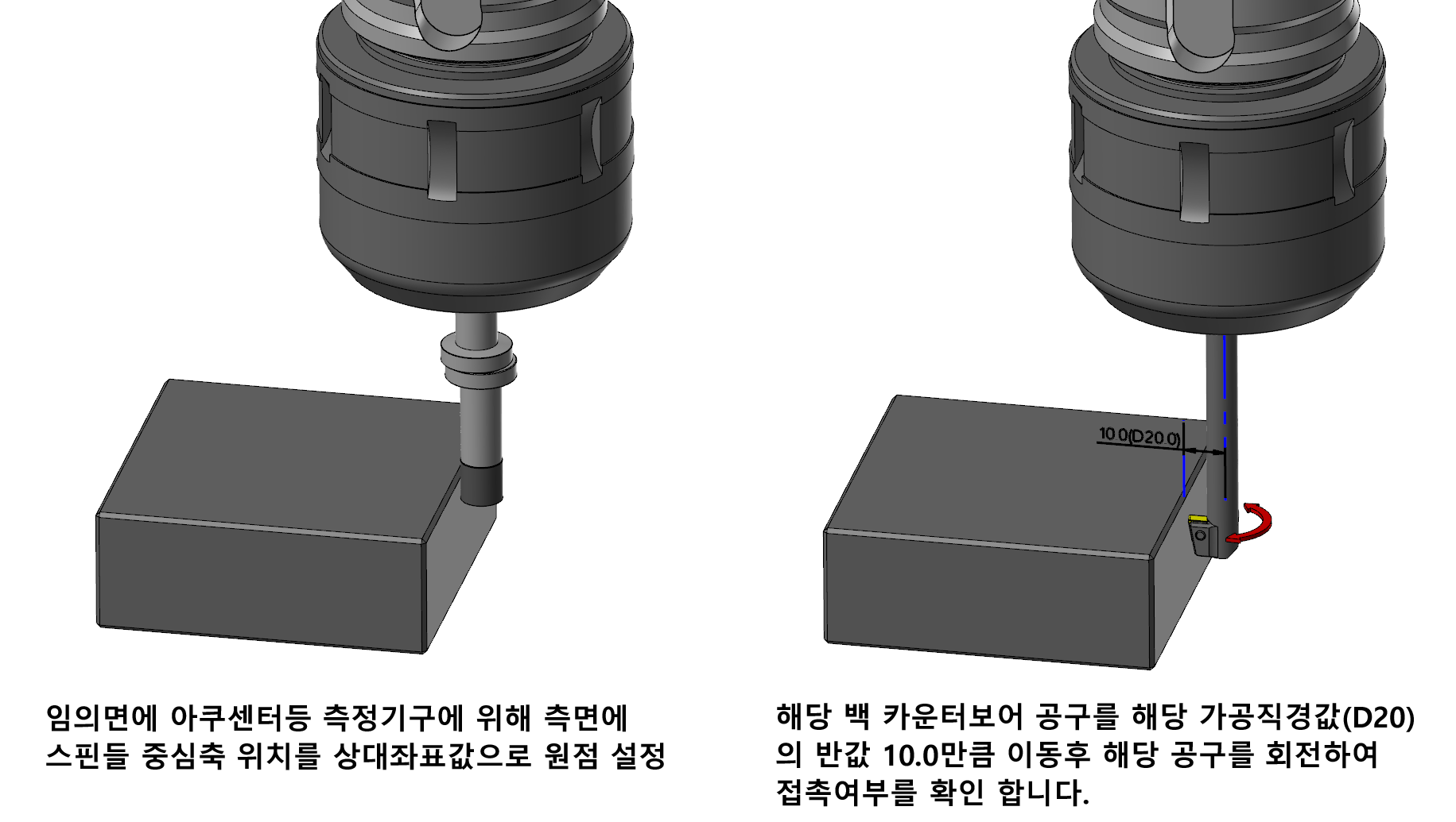 이번에는 백 카운터 보어 커터를 사용한 뒤면(백) 부 카운터 보어가공을 가능케 하는 공구 사용하는 방법을 알아보겠습니다.