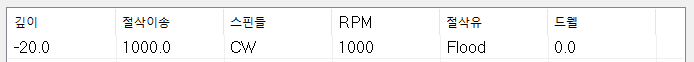 * 참고로 해당 가공정의 공구 항목의 절삭 조건은 사실상 무용지물입니다.