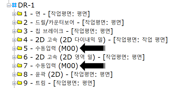 마스터캠에서 여러 가공정의를 생성중 몇 가지 작업환경에 따라 가공데이터(NC-data) 중에 사용자 형식의 지령문을 삽입하여야 할 경우가 있습니다.